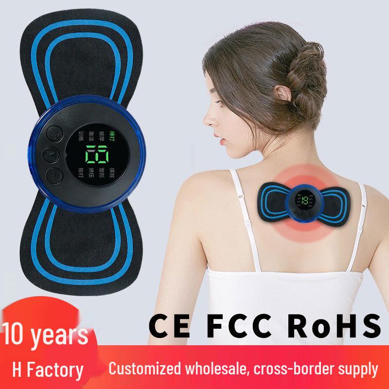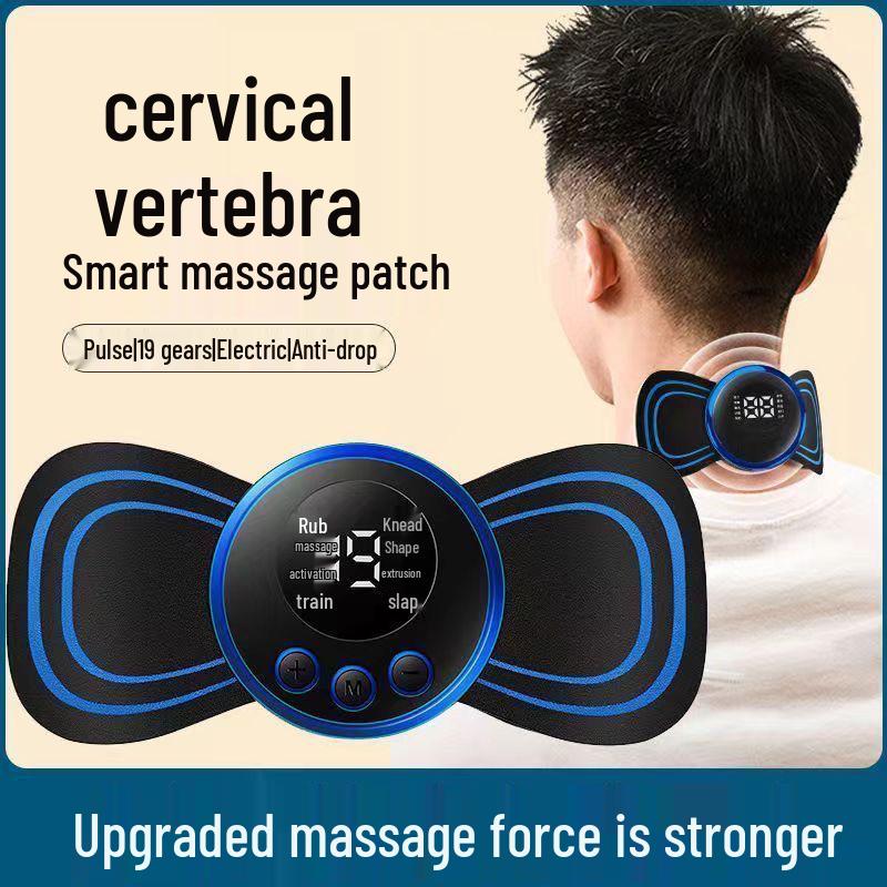 Портативный EMS импульсный массажер для шеи и плеч: Интеллектуальный мини-массажный пластырь для электротерапии.