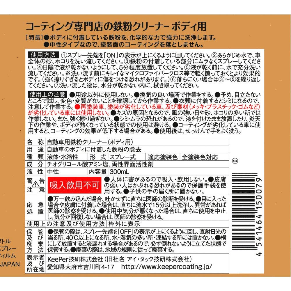 KeePer I-06 Specialty Shop’s Iron Particles , Removes Iron Particles from Vehicle Bodies, 10.2 fl oz (300 ml)