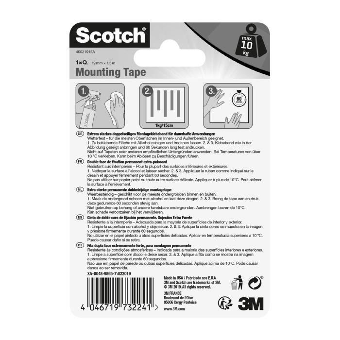 Двусторонний скотч - 3M - 1,5 м x 19 мм - Акриловый пенопластовый клей - Многоцелевой
