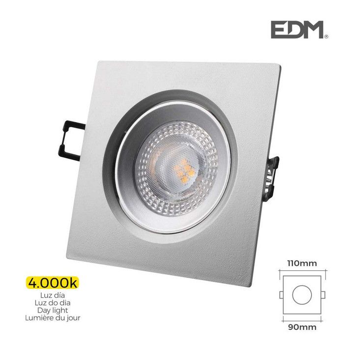 Downlight LED encastré - EDM - 31634 - 5W 380 lumens - 4000K - cadre chromé carré