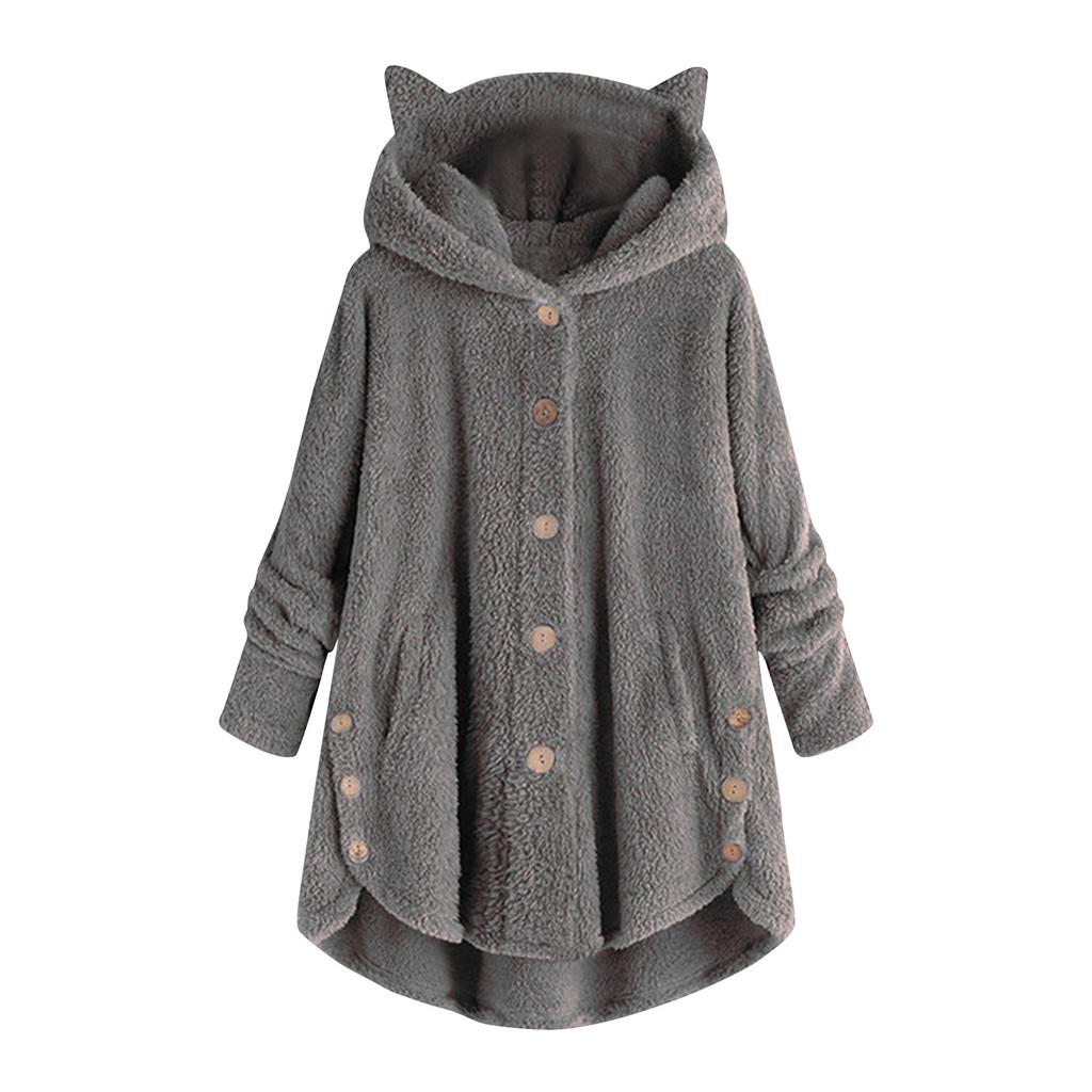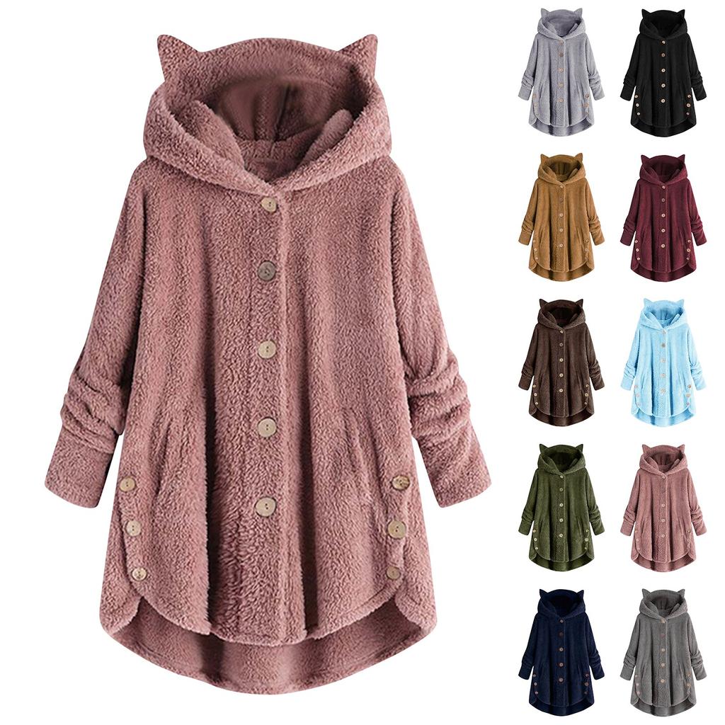 Женская зимняя куртка из двухстороннего флиса, плюшевая, повседневная, свободная, с капюшоном, на пуговицах, свитер