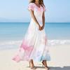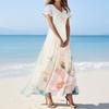 Женское летнее повседневное модное платье с цветочным принтом и V-образным вырезом с коротким рукавом
