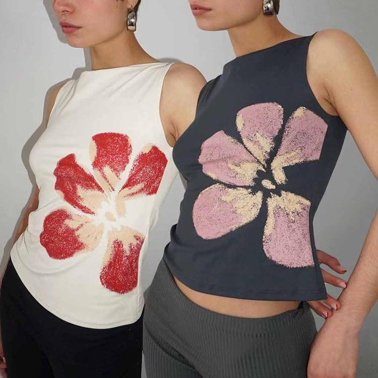 2025 Новая Мода Женские Укороченные Майки В Облежку С Цветочным Принтом Вырез Лодочкой Без Рукавов Летние Топы для Вечеринки Клуба — купить товар онлайн с бесплатной доставкой по всему миру!