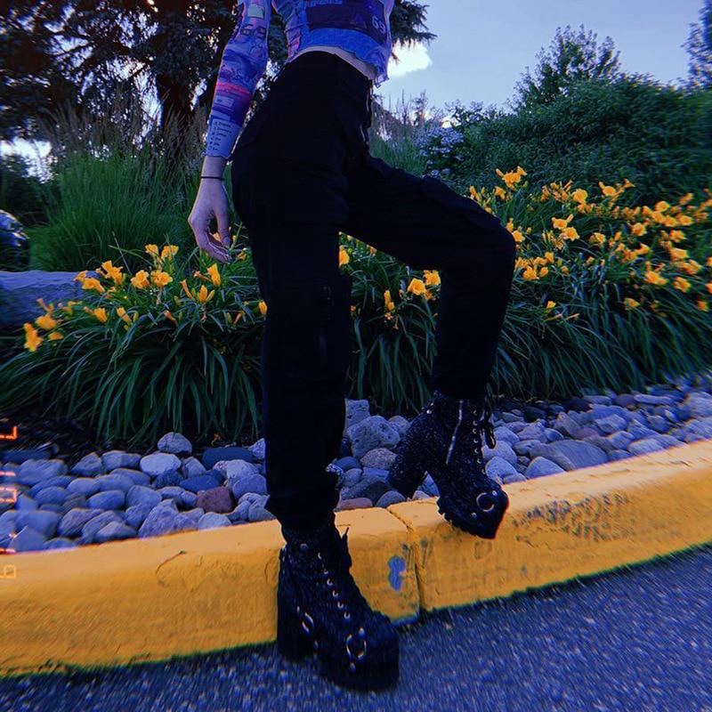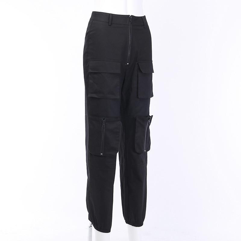Брюки с высокой талией, свободные джоггеры, женские армейские камуфляжные брюки, уличная одежда в стиле панк, черные брюки-карго, женские брюки-капри, корейские брюки