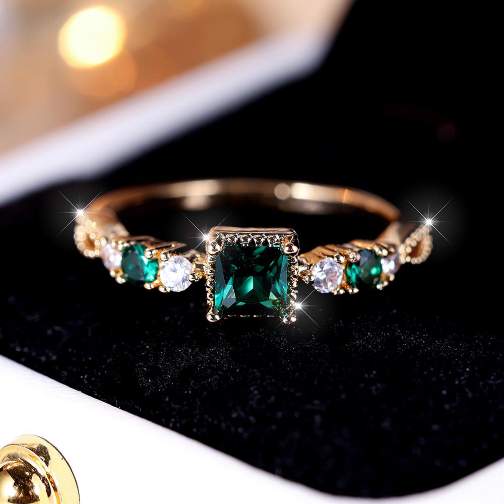 Cut Green Zircon Simple Wedding Rings For Women Minimalist Gold Color Finger Ring Fine Jewelry Wedding Party ADM