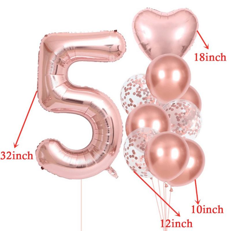 Набор из 10 штук 32-дюймовых шаров-цифр розового золота для украшения вечеринки AVE