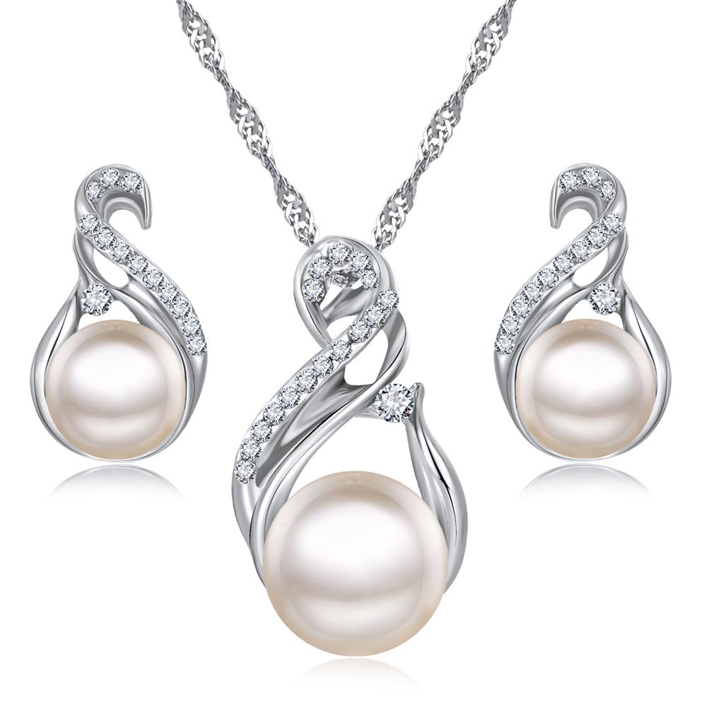 Fashion Pearl Jewelry Set Crystal Necklace Earring Ladies Statement Bridal Wedding Accessories Gifts ARI
