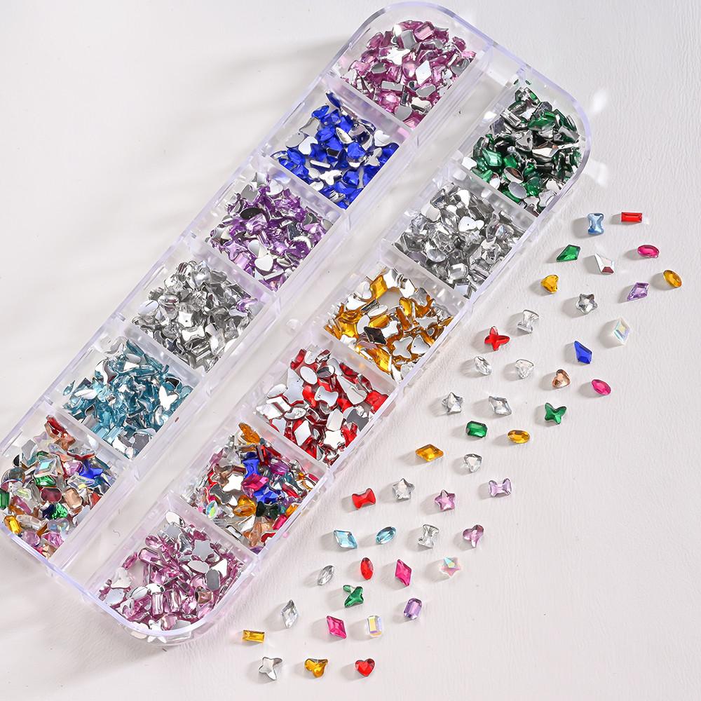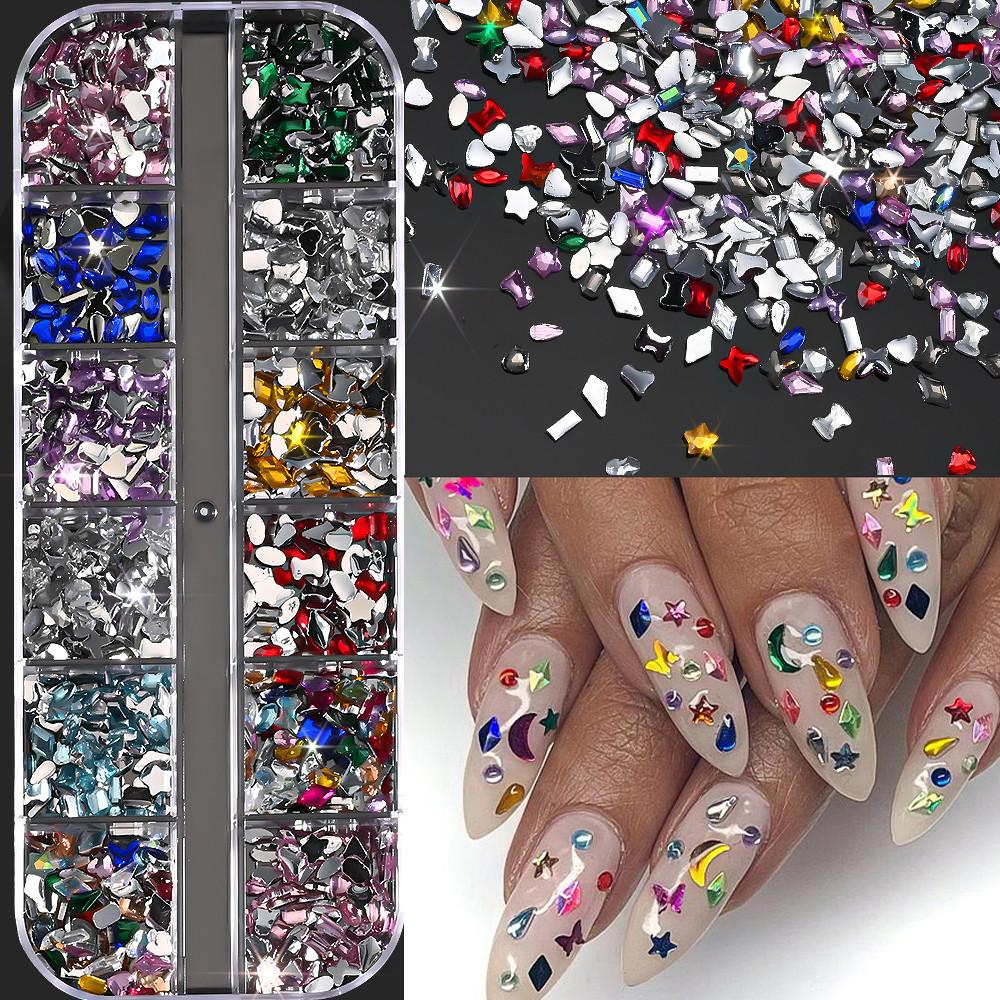 2000+ шт. Разноцветные стразы Шармы для нейл-арта Кристаллы разной формы Плоские спинки Драгоценные камни для ногтей 3D Мини Сердце Звезда Бабочка Алмазы для ногтей