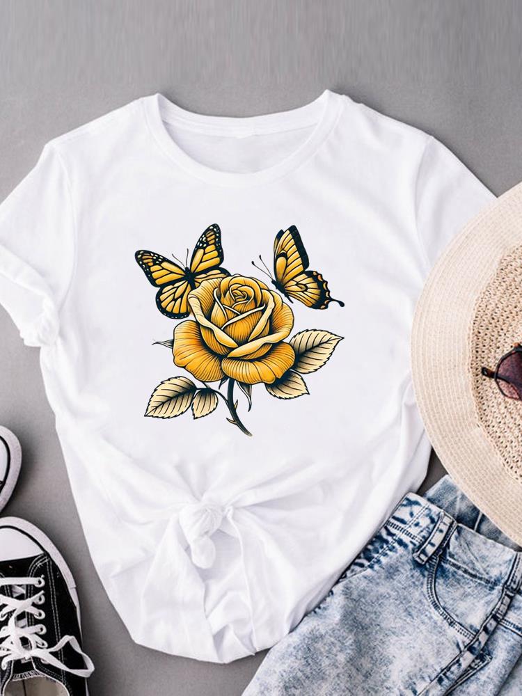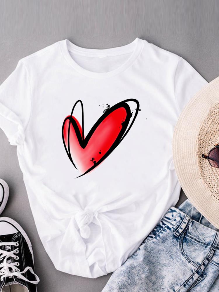 (Asian Size) watercolor flower love cute Women's Top Fashion T Clothing Print Female Casual Short Sleeve T-shirts Graphic Tee