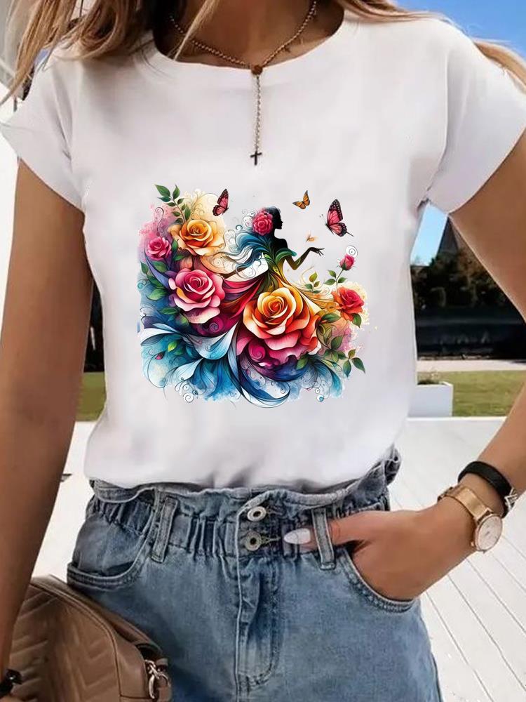 (Азиатский размер) цветок милый тренд милый Графическая футболка Мода Т Одежда Женский топ Принт Женский Повседневный Футболки с коротким рукавом