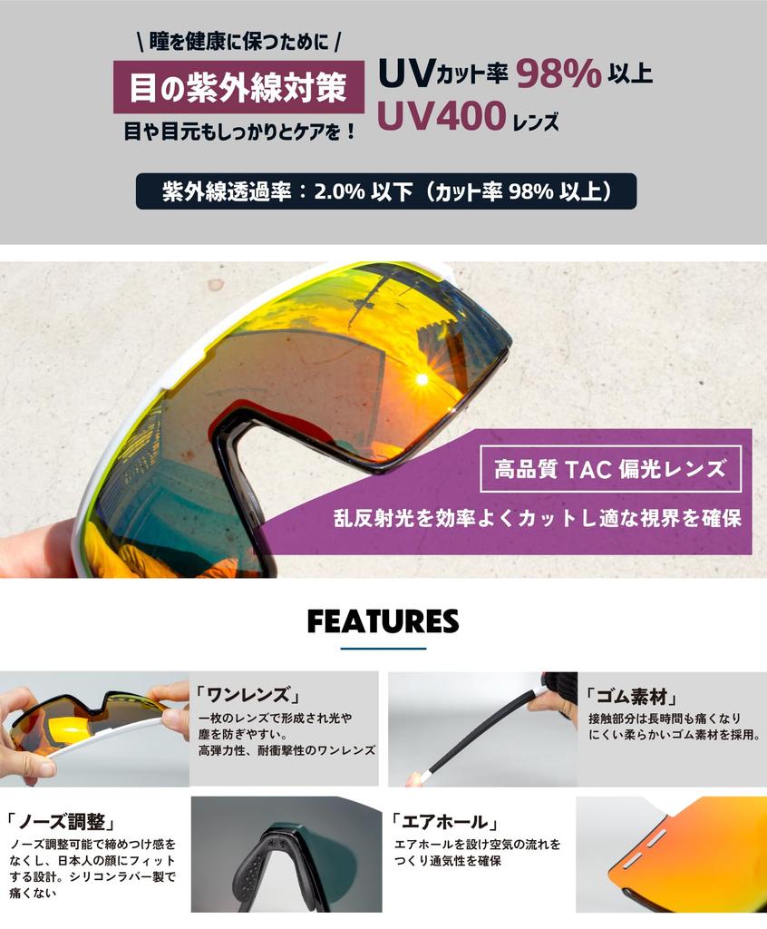 [Широкий объектив] Большая площадь линзы обеспечивает широкое поле зрения, не сужая его.. Более крупные линзы, которые популярны среди бейсболистов в наши дни, закрывают широкую область лица, предотвращая попадание пыли и насекомых в глаза и обеспечивая защиту от ультрафиолета на большой площади.