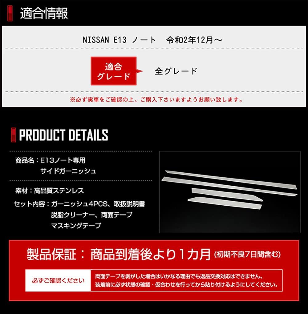 Stainless Steel Side Garnish Set for Nissan Note Custom Compatible with Nissan Note S YOURS 4-Piece E13, Parts, Accessories, Dress-Up, y31-027 [2]