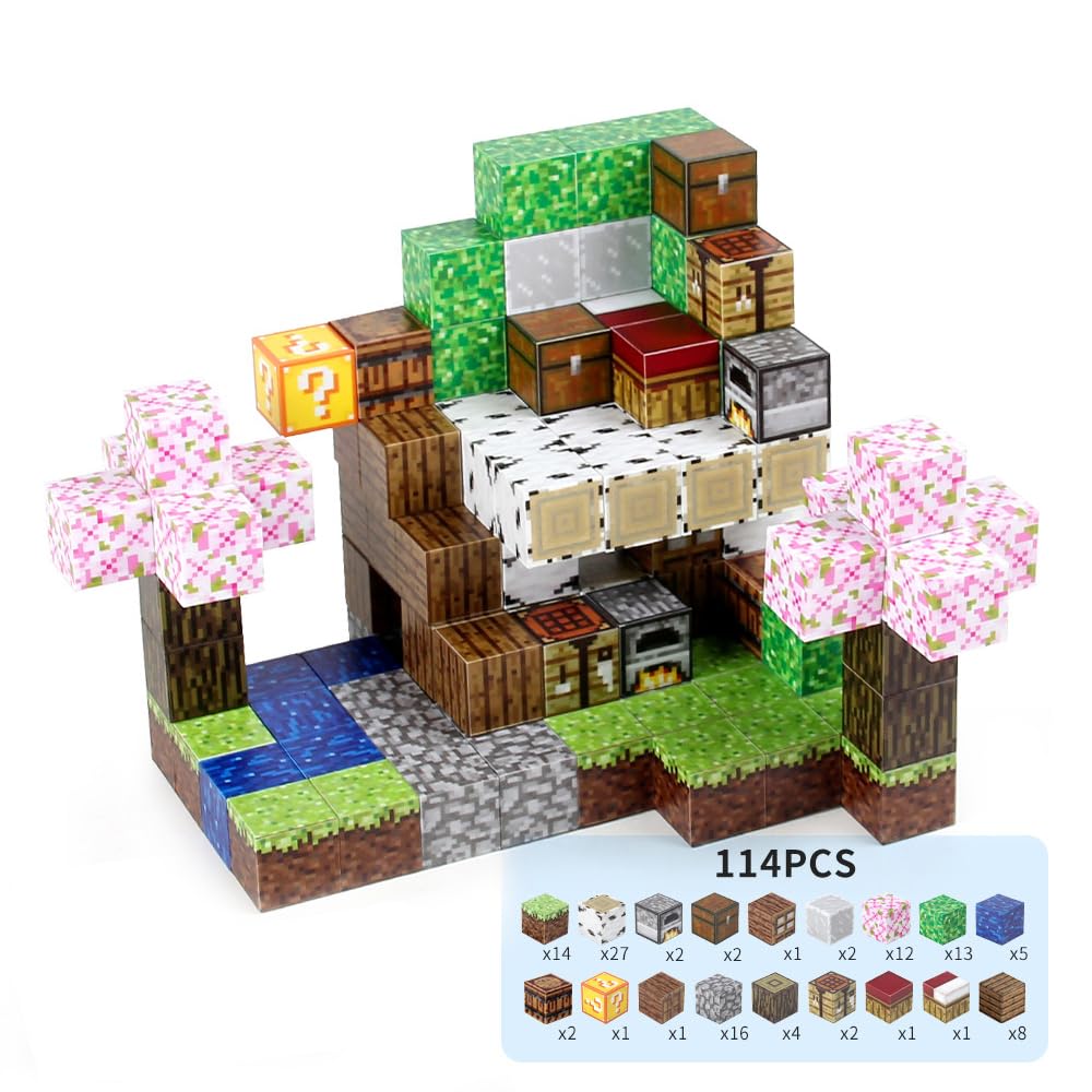Vexolite Магнитный конструктор 3D Развивающая игрушка для начальной школы, на день рождения, для поступления в детский сад, на выпускной, на Рождество, Лесные блоки, в стиле Майнкрафт