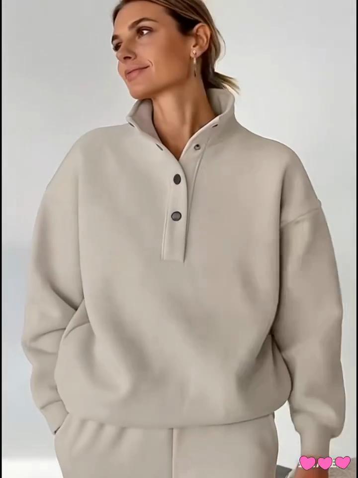 Весенне-осенний модный женский комплект худи с воротником на пуговицах и свободных брюк — купить товар онлайн с бесплатной доставкой по всему миру!