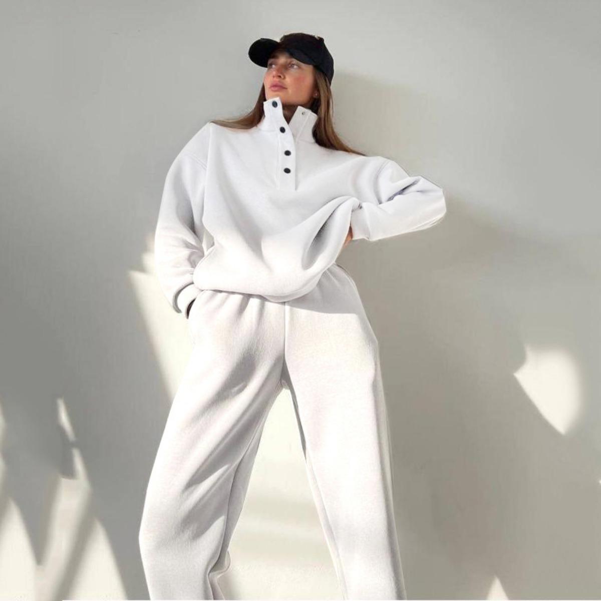 Весенне-осенний женский модный худи с воротником на пуговицах и свободные брюки, комплект худи — купить товар онлайн с бесплатной доставкой по всему миру!