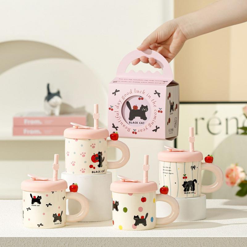 Сувенирная кружка-яблоко высокой ценности с крышкой, подарочная коробка, бытовая чашка для воды, милая кружка с соломинкой, керамическая кофейная чашка