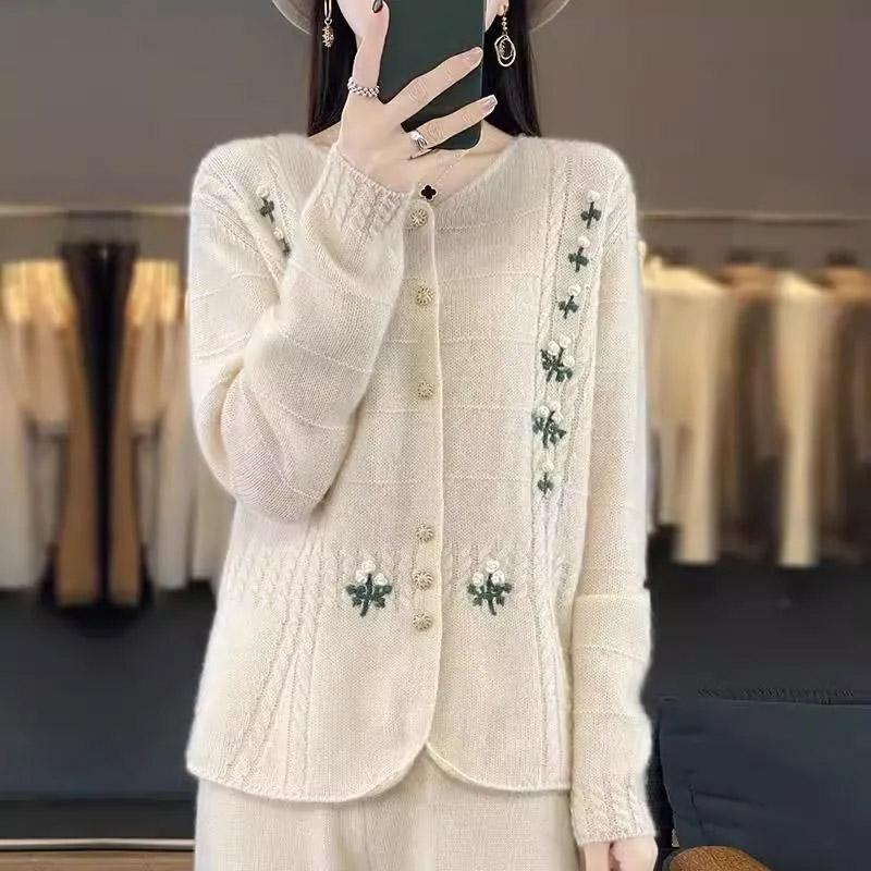 Свитера Пальто Кардиган для Женщин Осень Зима Вышитый Эластичный Свободный Длинный Рукав Вязаный Кардиган Свитера Куртка — купить товар онлайн с бесплатной доставкой по всему миру!