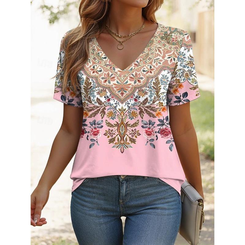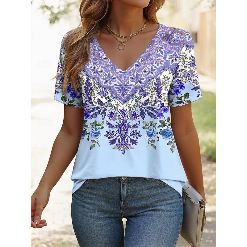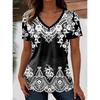 3D-печать, женские футболки, V-образный вырез, свитера, свободные, короткий рукав, длинная футболка, повседневная, диагональный воротник, уличная одежда