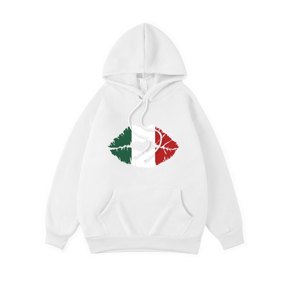 Толстовки с принтом губ цвета флага Мексики, женские повседневные толстовки с карманом, зимние толстовки, базовая спортивная женская одежда