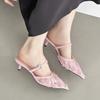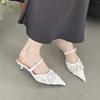 Остроносые кружевные туфли-шлепанцы на высоком каблуке, новые черные дышащие сетчатые босоножки-стилетто с юбкой, женская обувь