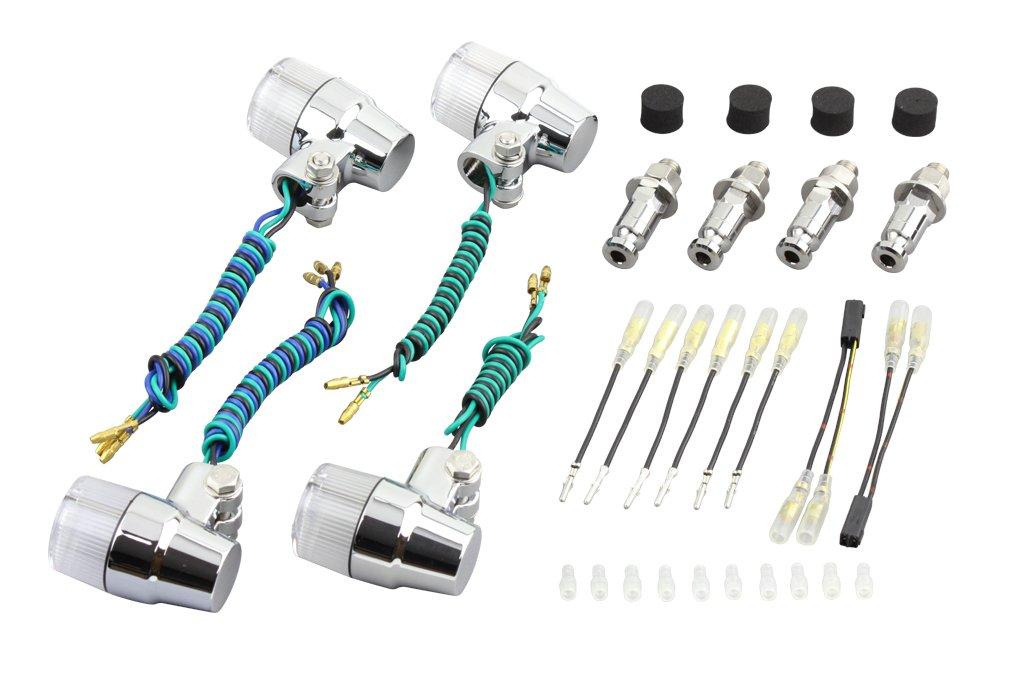 аксессуары: Передняя 12В 23/8Вт двухконтактная лампа, задняя 12В 23Вт лампа, кронштейн указателя поворота, специальное основание кронштейна, переходной шнур-разъем