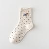 Тонкие носки на весну и осень, милые мультяшные носки до середины икры, носки в горошек с отворотами, длинные носки в школьном стиле