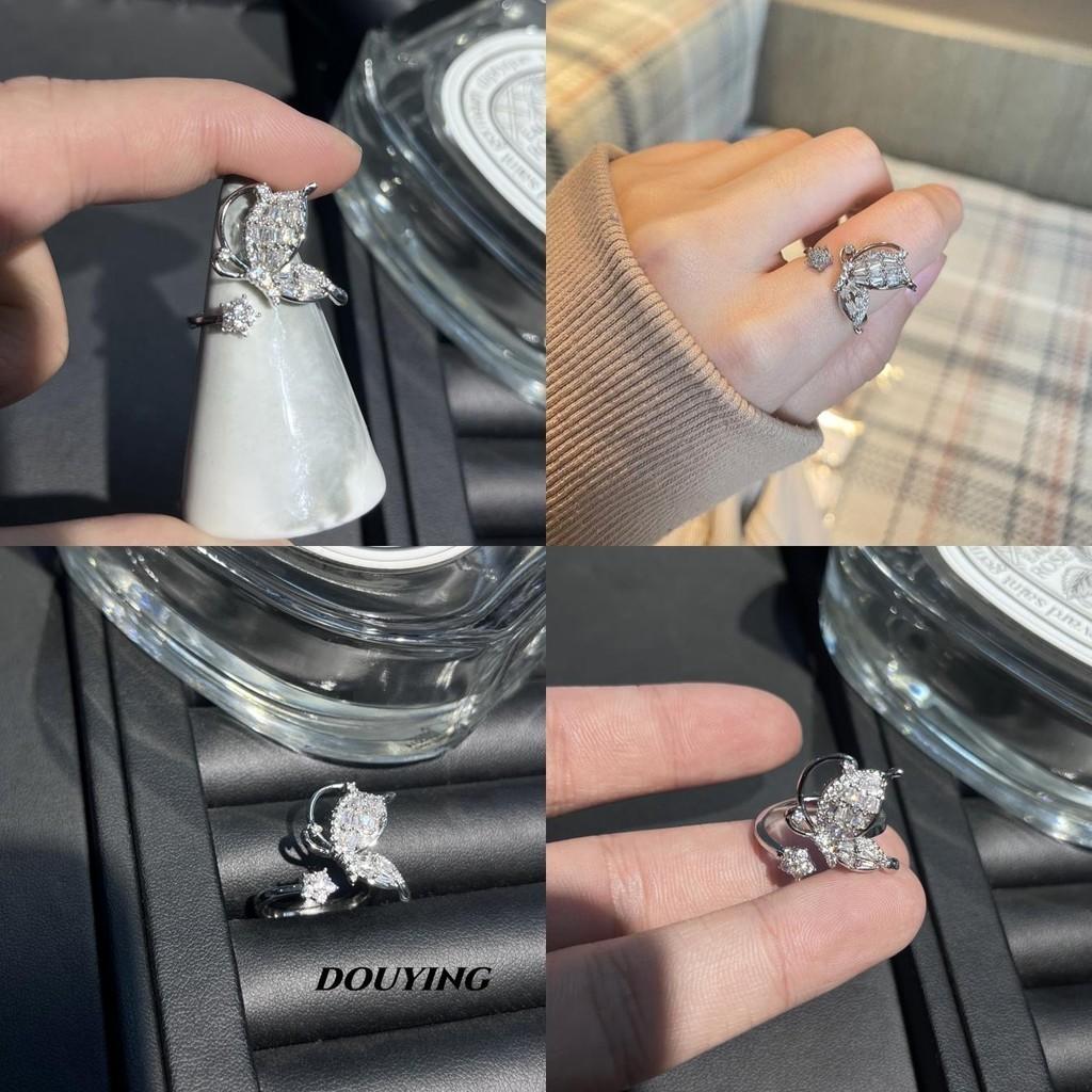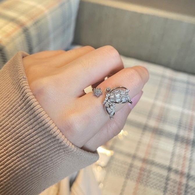 Дизайн Полое Корейское Кольцо с Цирконом в Форме Бабочки и Гексаграммы Модное и Классическое Женское Украшение на Палец