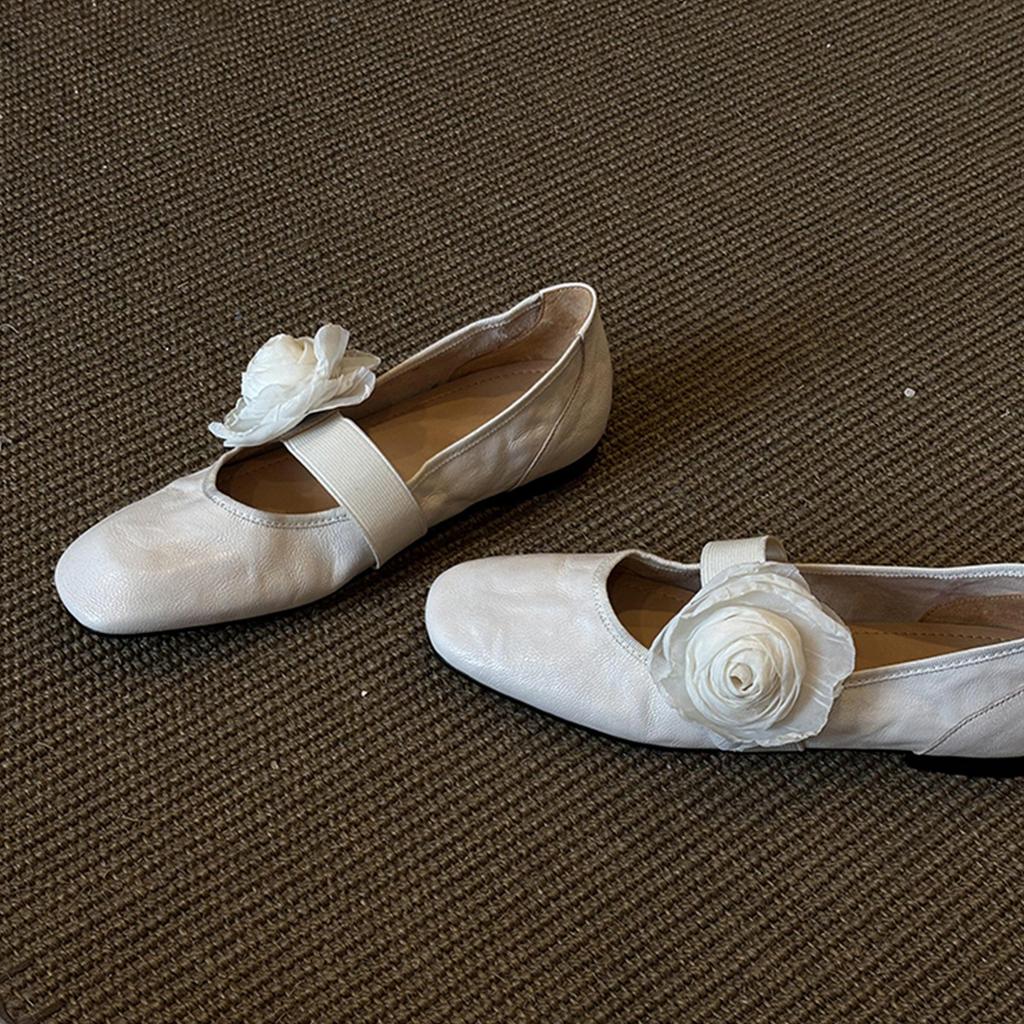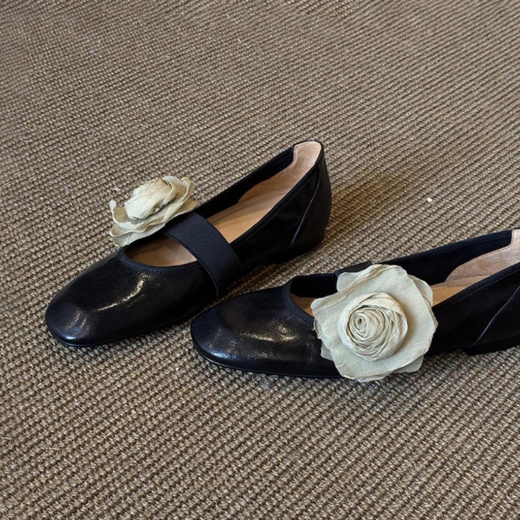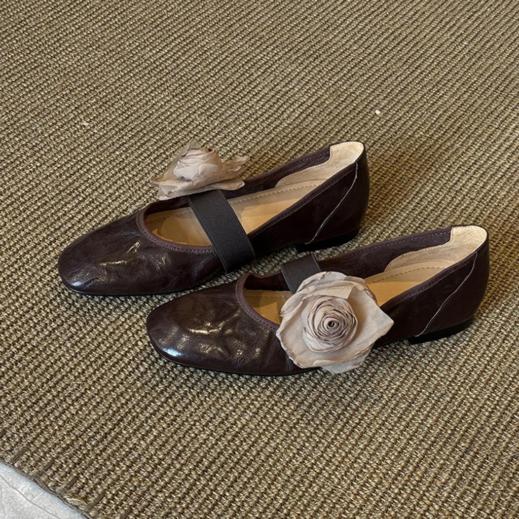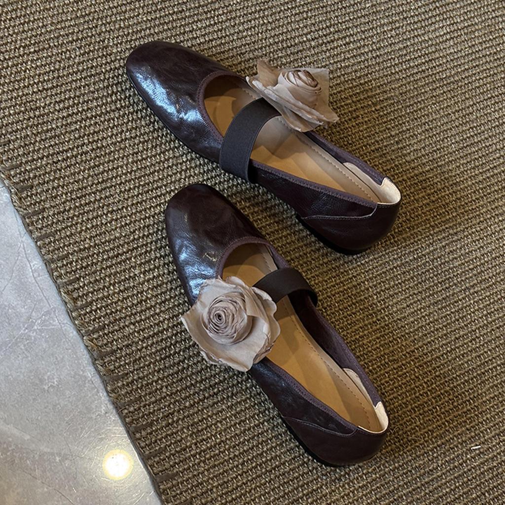 Овчина~ Ретро ремень на одно слово съемный цветок неглубокий вырез одинарная обувь женская кожаная обувь на мягкой подошве неглубокие балетки