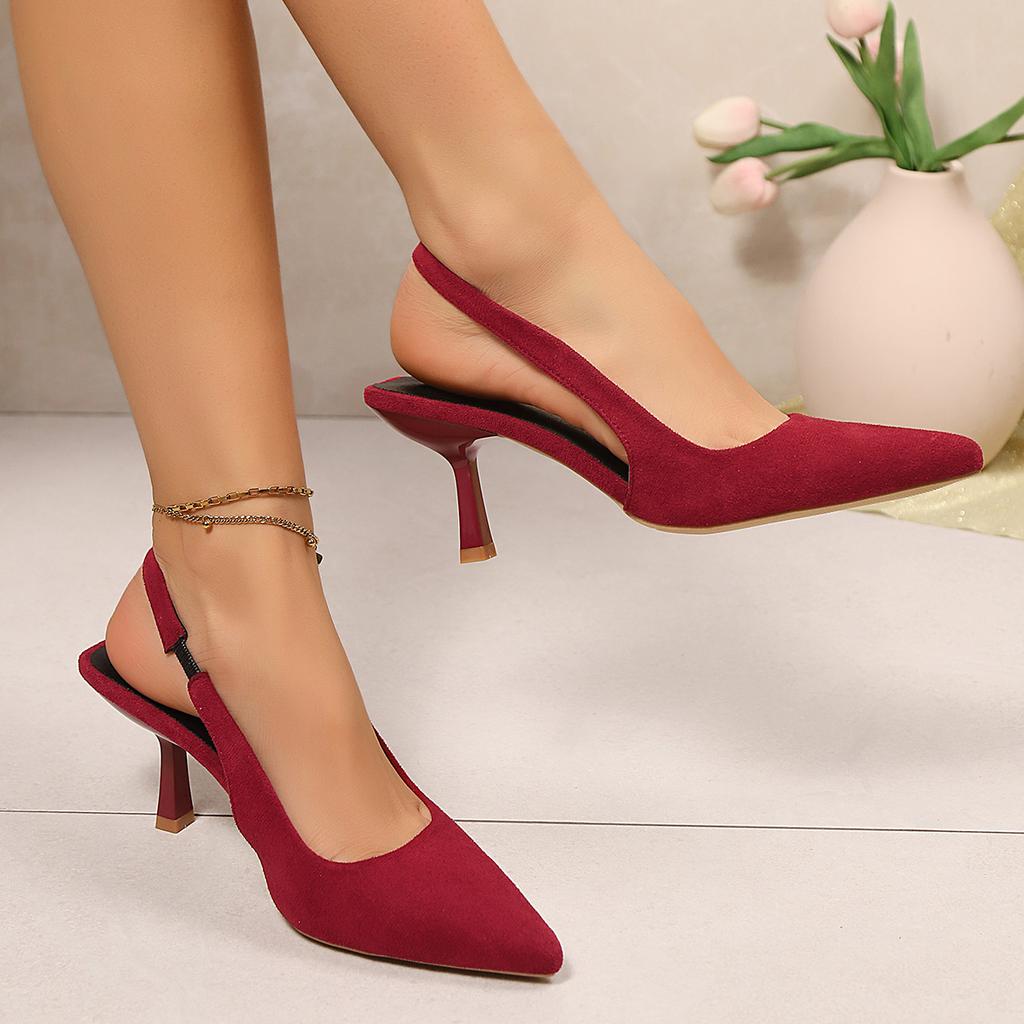 Lovely Sandals Women Casual Thin High Heels Shoes Women Bright Bling Shine Slip on Flock Pointed Toe Summer Sandals Plus Size