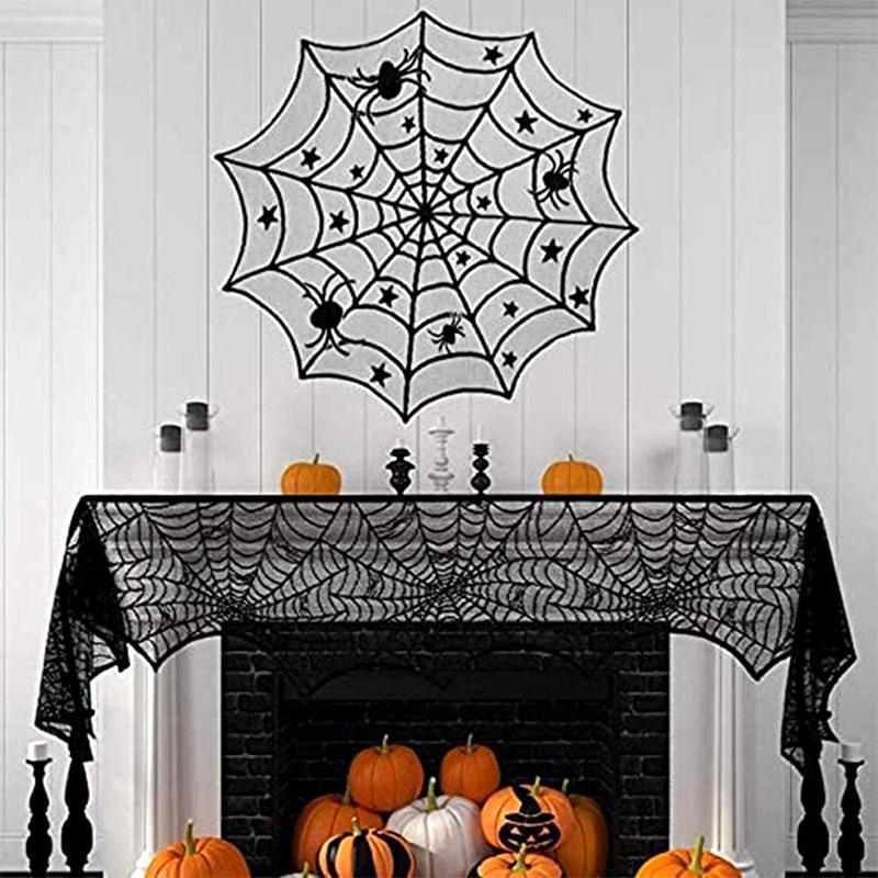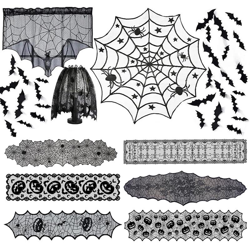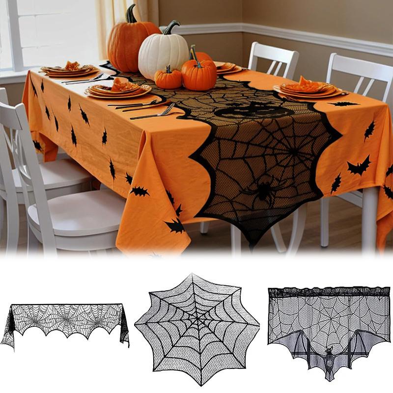 Жуткая скатерть на Хэллоуин, черное кружево, дизайн паутины, каминный шарф, декор дома с привидениями, украшение для вечеринки