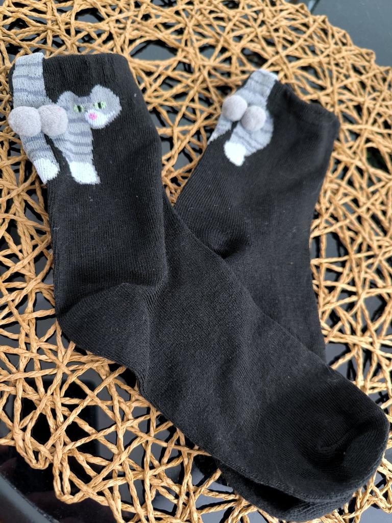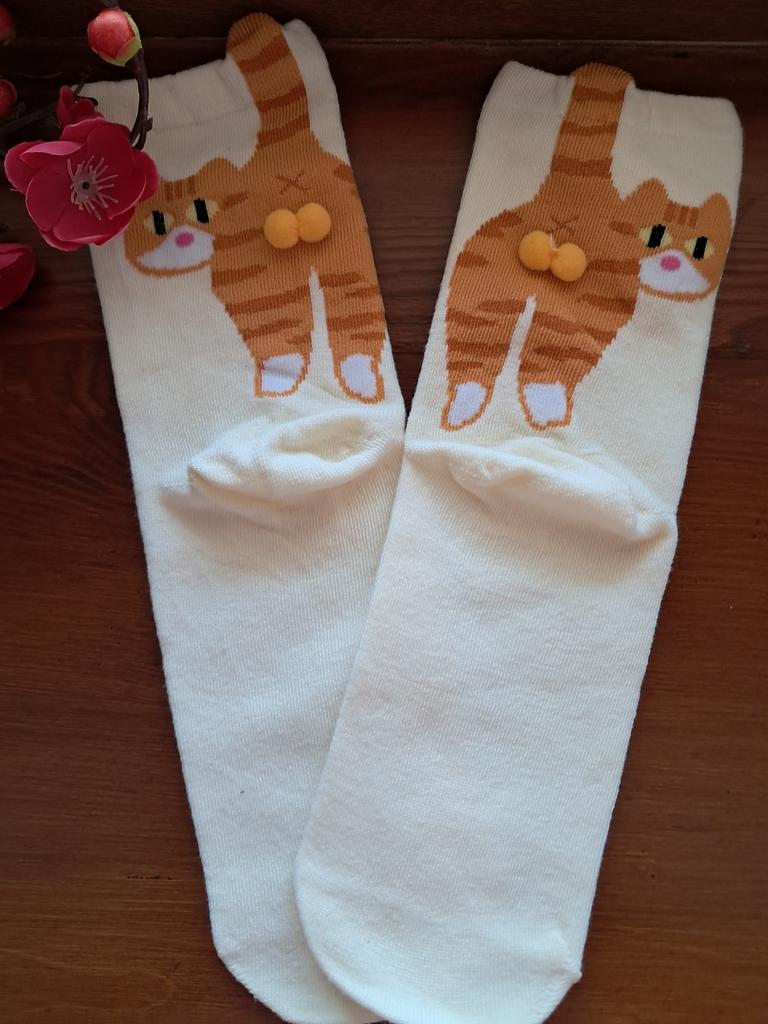 Носки средней длины с милым мультяшным котом на пятке, объемным меховым помпоном, забавные носки — купить товар онлайн с бесплатной доставкой по всему миру!