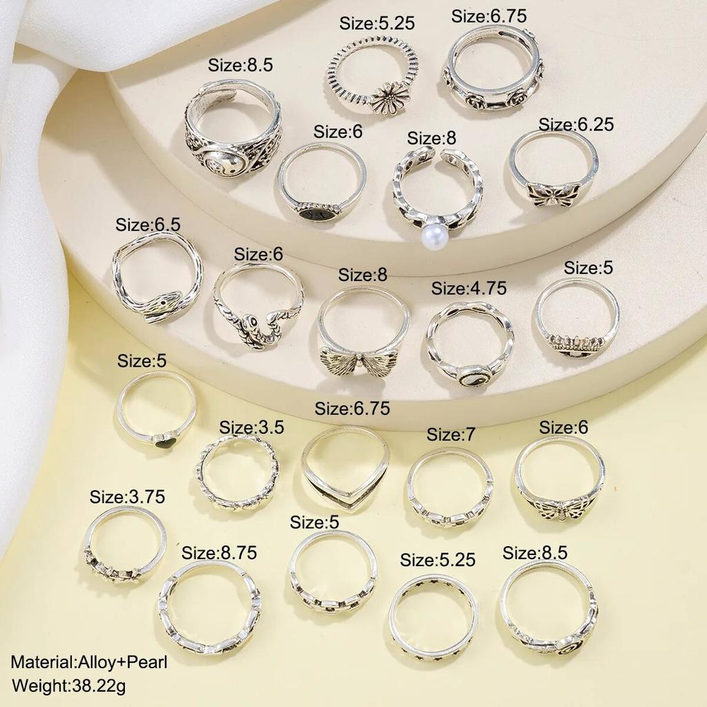 Набор из 21 кольца в стиле панк с дизайном бабочки и сердца, многоэлементные кольца-змеи