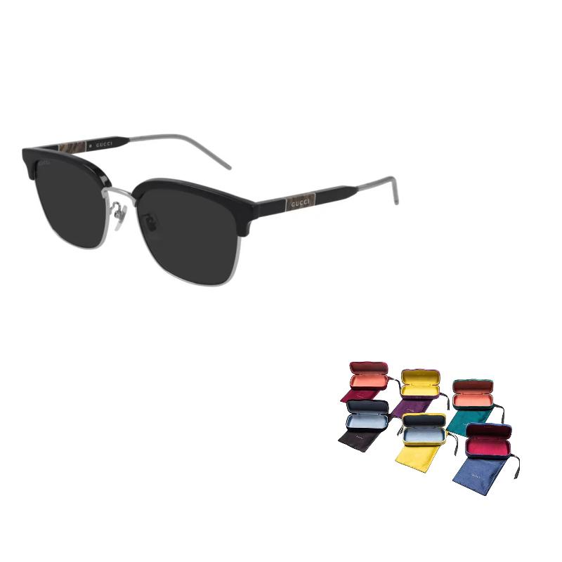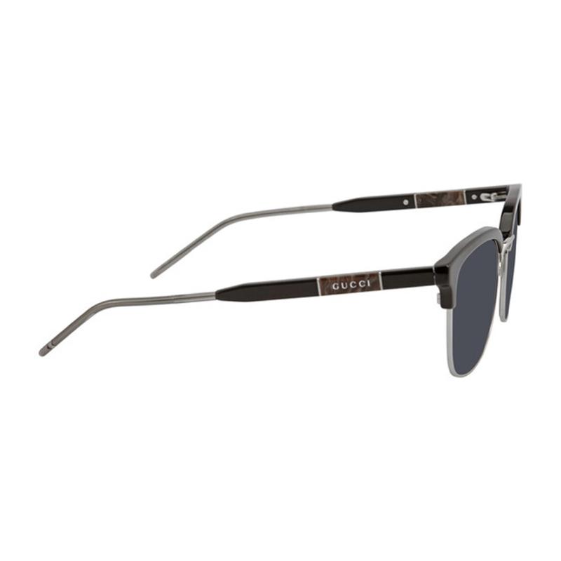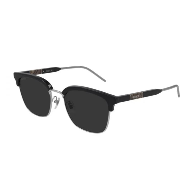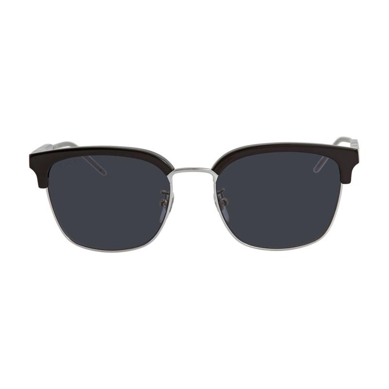 Gucci Солнцезащитные очки с полуободковой оправой, мраморной этикеткой и серебристыми дужками, черные, унисекс