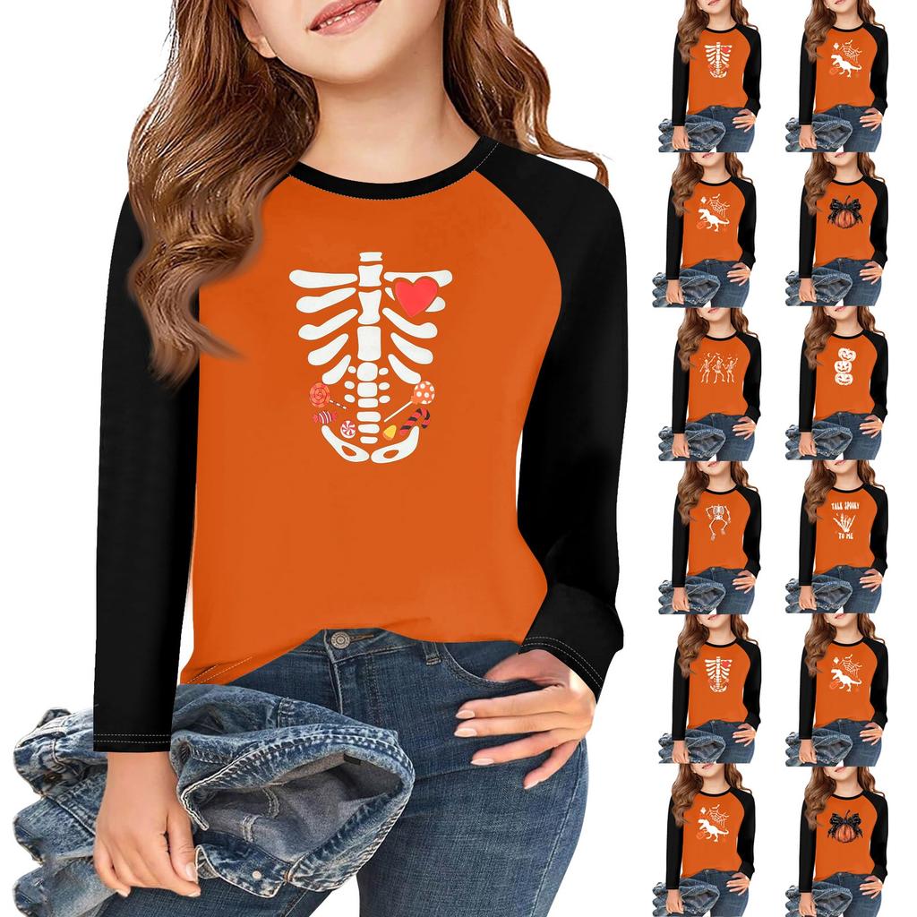 Футболки с длинным рукавом для девочек на Хэллоуин, детские осенние топы с круглым вырезом, базовые футболки 5-14 лет — купить товар онлайн с бесплатной доставкой до всему миру!