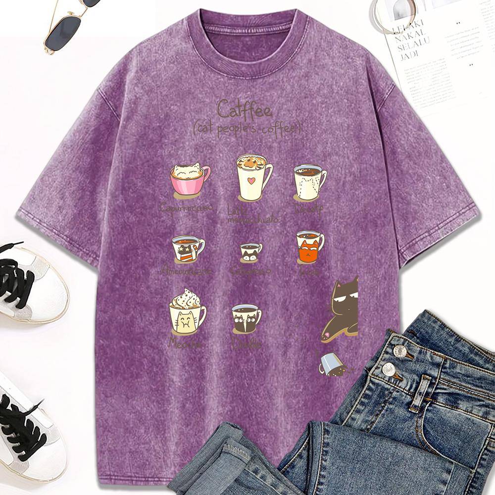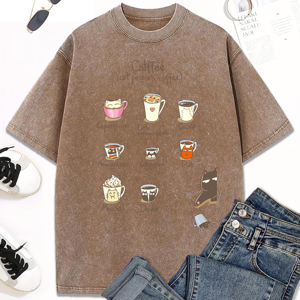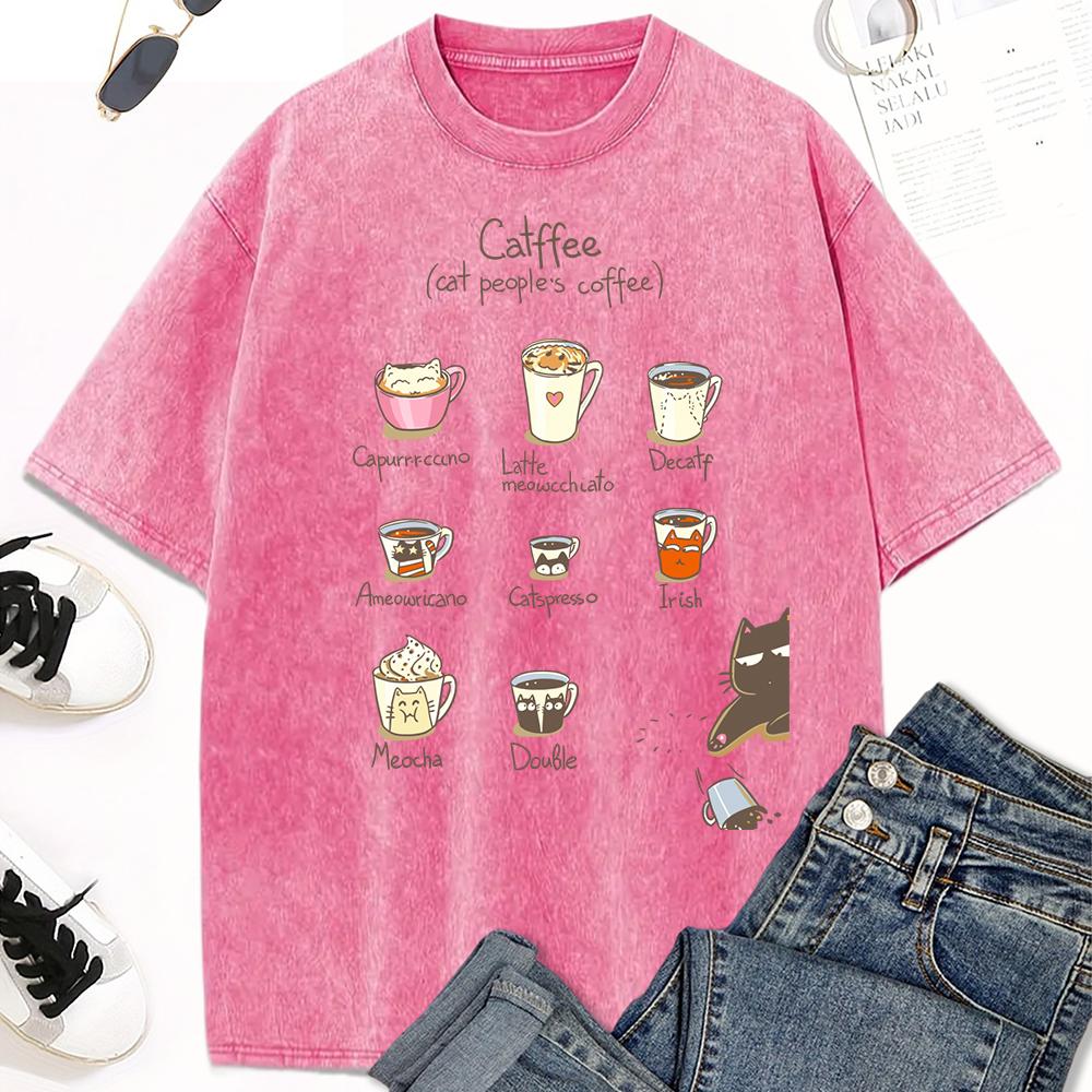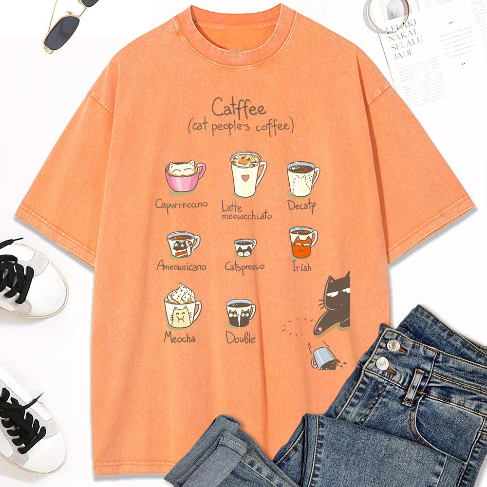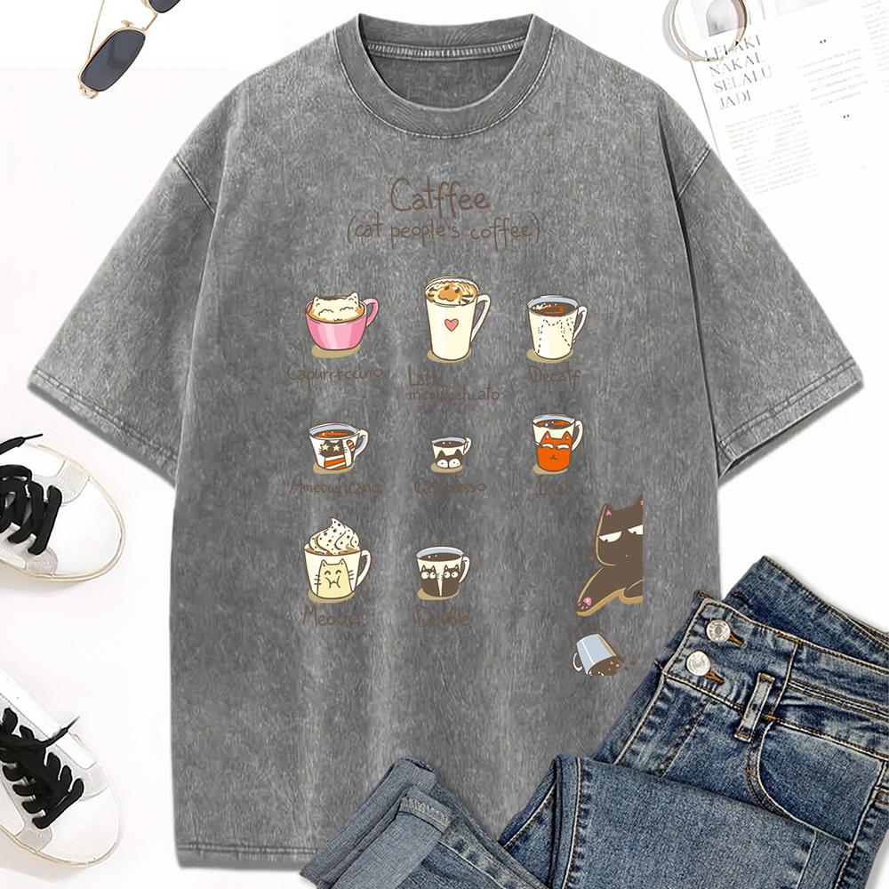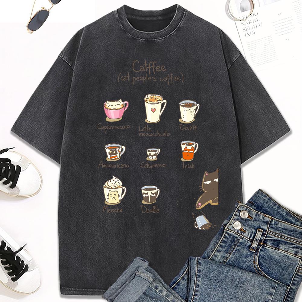 Принт с иллюстрацией кофейных котов, женская стираная футболка, трендовая футболка с круглым вырезом, одежда, хлопок, короткий рукав