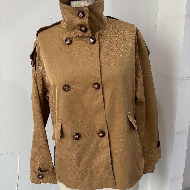Женский тренч цвета хаки, двубортный жакет, женский жакет со стойкой, рукав полной длины, карман, осенняя повседневная свободная верхняя одежда, женская