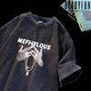 Женская выстиранная футболка Корейский топ С принтом Круглый вырез Короткий рукав Выстиранная футболка Мода Уличная одежда Футболка с коротким рукавом