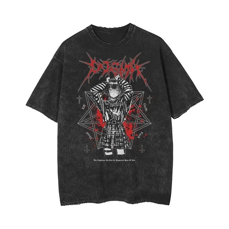 Аниме Мужские Готические Футболки с Принтом, Выстиранные, Женские Летние Харадзюку Повседневные Свободные Ретро Футболки с Коротким Рукавом и Круглым Вырезом