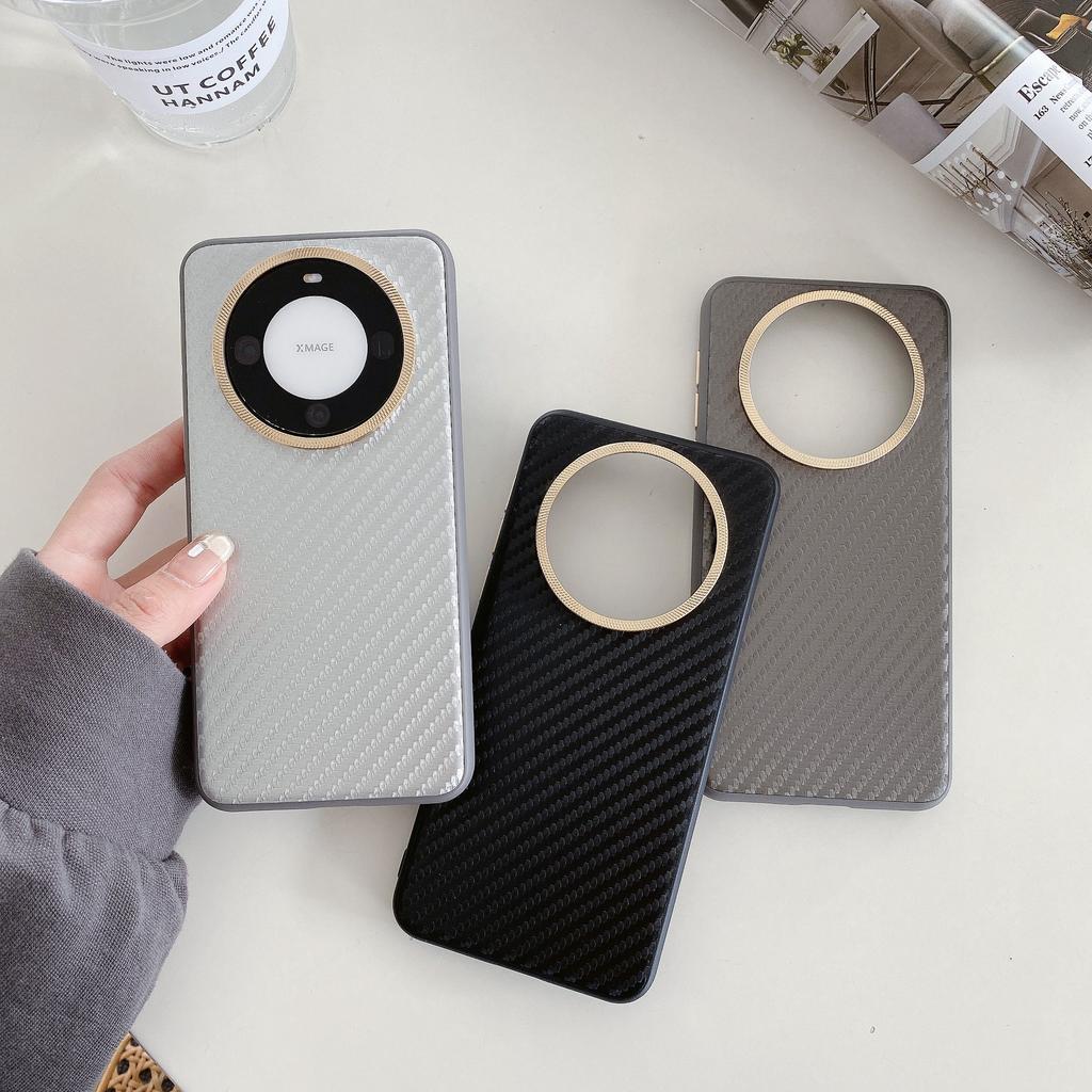 Подходит для Huawei Mate60pro+ Чехол для телефона с текстурой кевларового волокна P70art с металлическим кольцом для защиты объектива