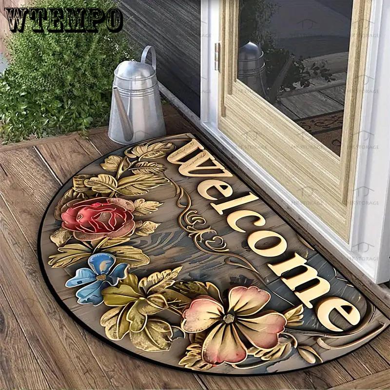 Полукруглый придверный коврик Легкий в уходе Противоскользящий коврик для ног Бытовой напольный коврик