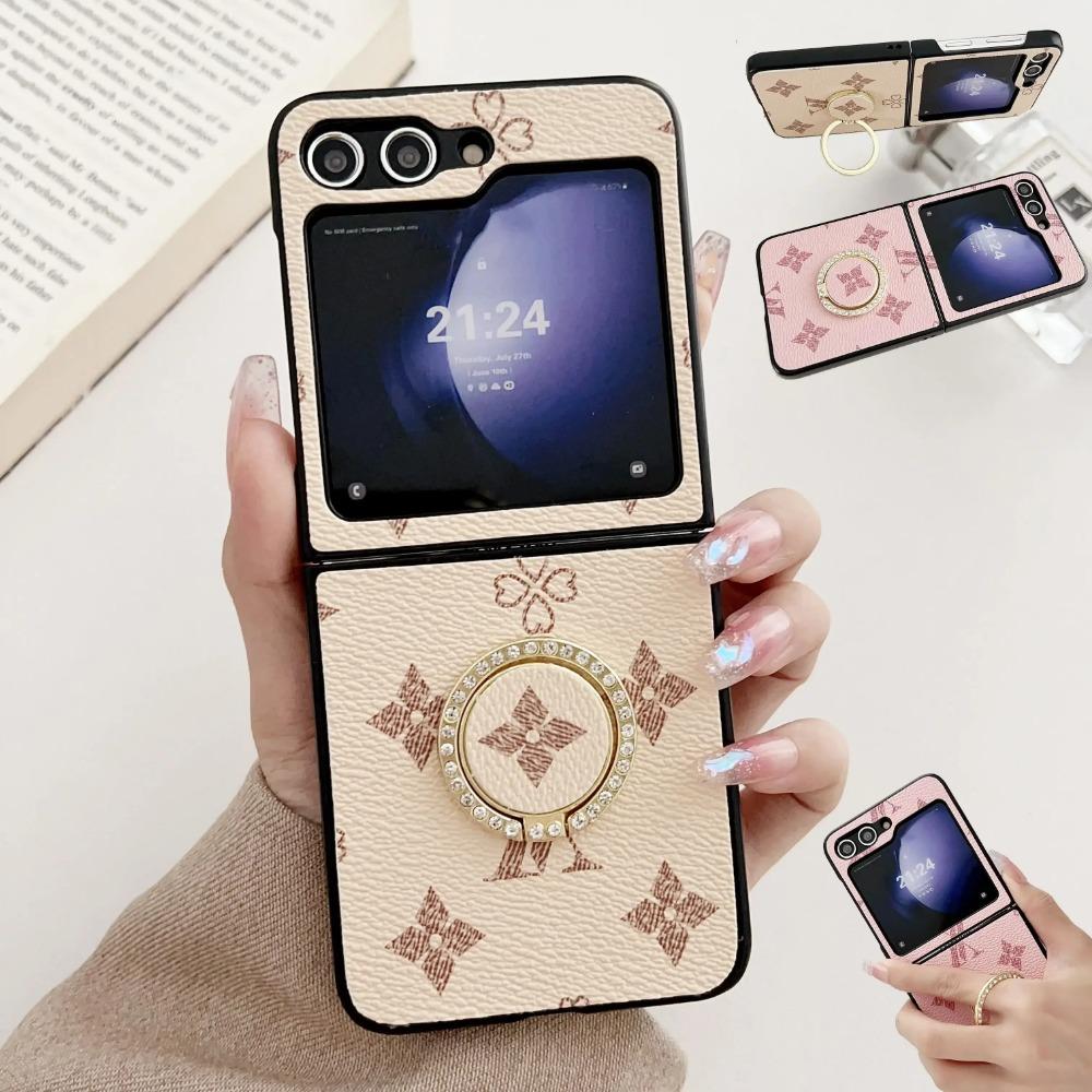 Роскошный деловой чехол для телефона с ретро-узором и двойным V для Samsung Galaxy Z Flip 7 6 5 4 3, черный браслет-цепочка, женская защитная крышка