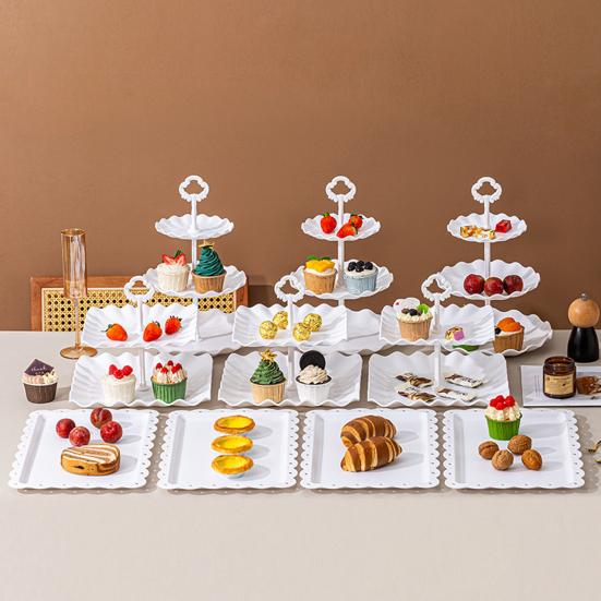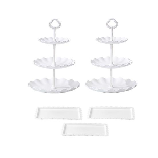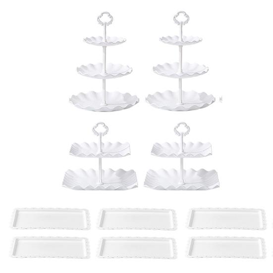 Стильный дизайн: Поднимите свой десертный стол на новый уровень с нашими 3-ярусными подставками для кексов и 3 большими подносами. Изящный и современный дизайн добавляет нотку элегантности любому случаю, обеспечивая при этом достаточно места для множества угощений.. Выделитесь на вашем следующем мероприятии с этими десертными подносами.