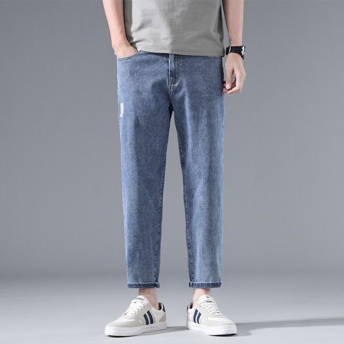 Новые мужские брюки длиной девять точек на весну и лето, облегающие брюки с узкими штанинами, корейская версия, джинсы длиной 9 точек