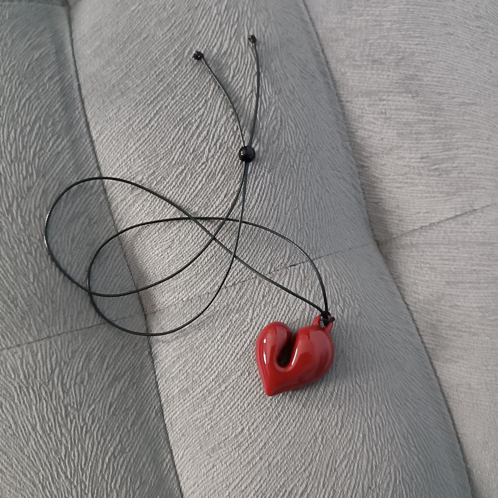 Кулон понравился, но к сожалению цвет не ярко красный, а бордовый. Специально приложила два фото. Первое с фильтром чтобы показать реальный цвет сердечка, второе без изменений. Видно и у продавца фотографии не передали реальный цвет. Шарик шнурок не фиксирует. Мне хотелось бы шнурок немного подлиннее.