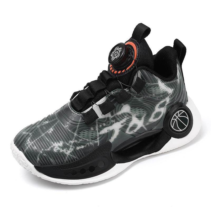 Обувь для мальчиков, водонепроницаемая спортивная обувь с кожаным верхом, детская баскетбольная обувь с вращающейся пряжкой, амортизация