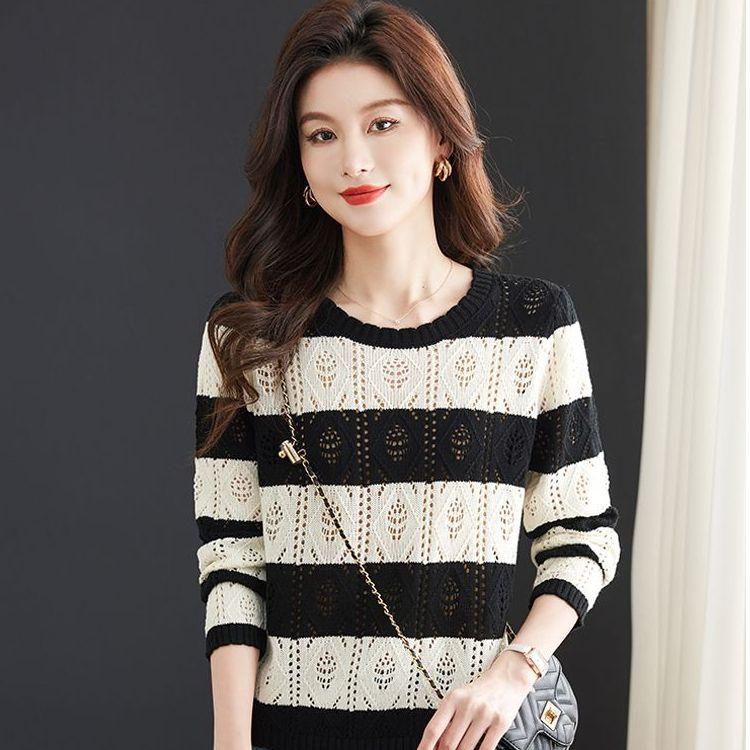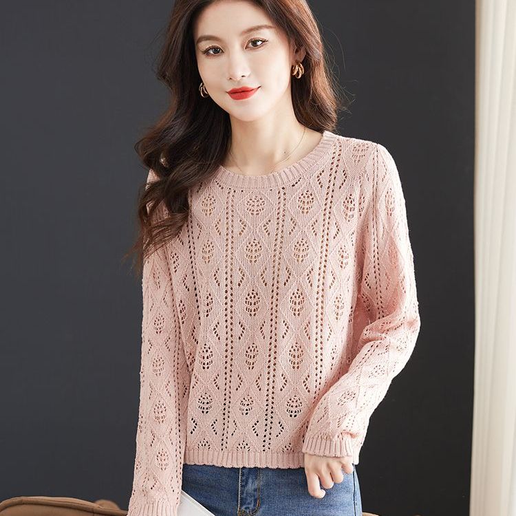 Новый короткий, свободный и тонкий женский вязаный свитер-верхняя одежда с узорами, связанными крючком и ажурной вязкой