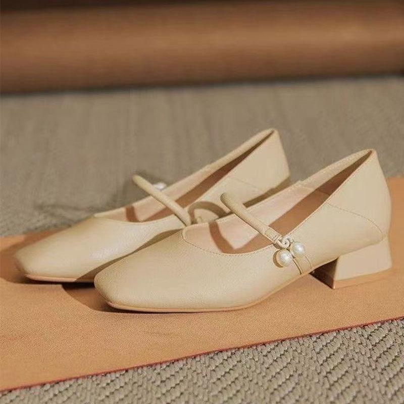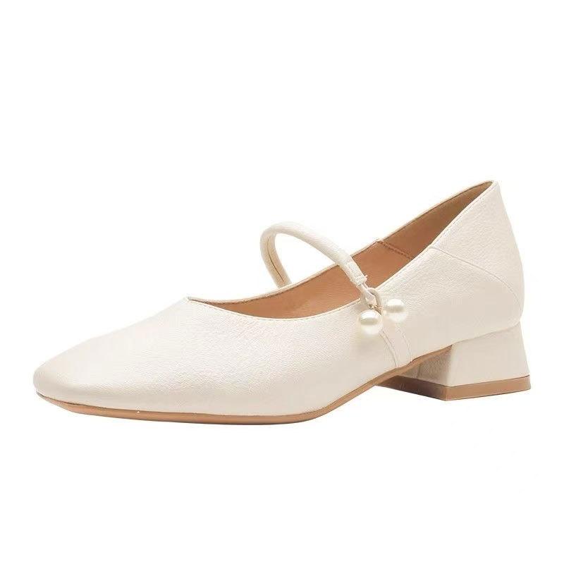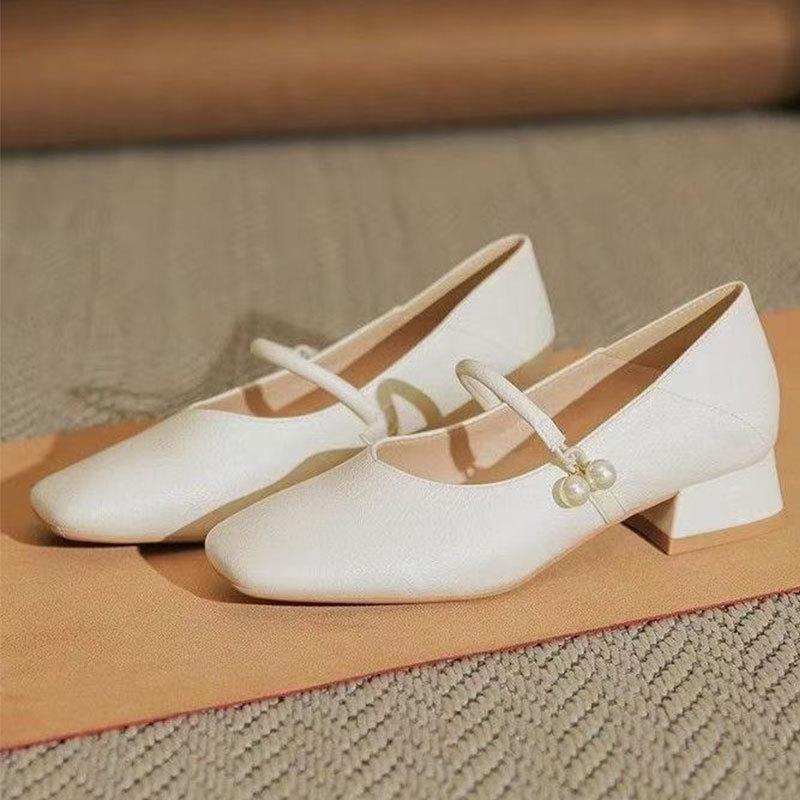 Белые туфли Мэри Джейн в стиле ретро для свадьбы, украшенные жемчугом и низким толстым каблуком