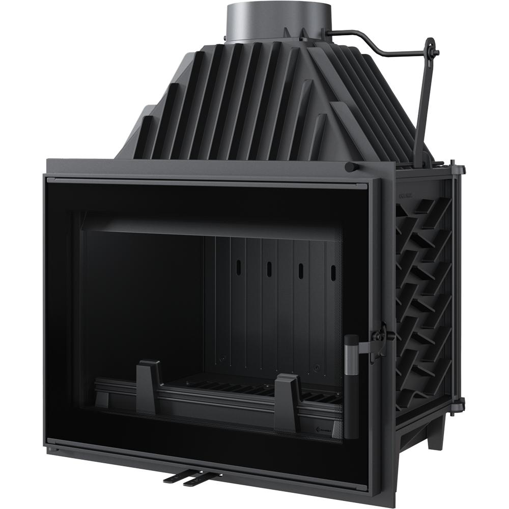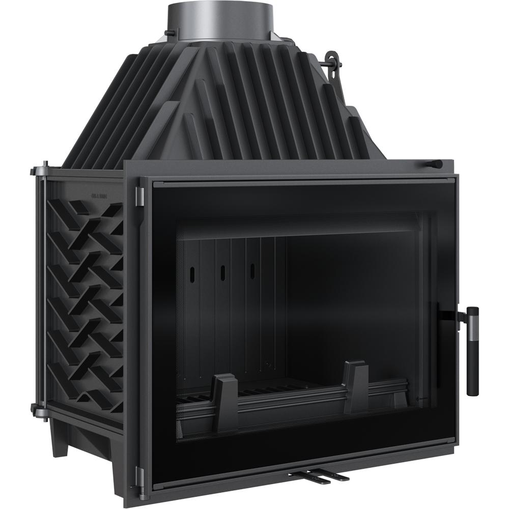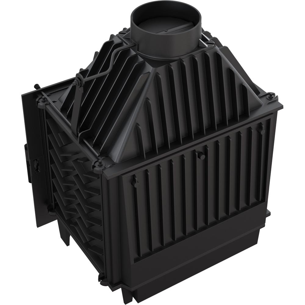Вставка оснащена внешними плотно расставленными радиаторами.. За счет такого решения площадь теплоотдачи в окружающую среду значительно выше и в то же время увеличивается масса камина.