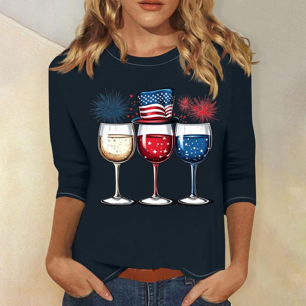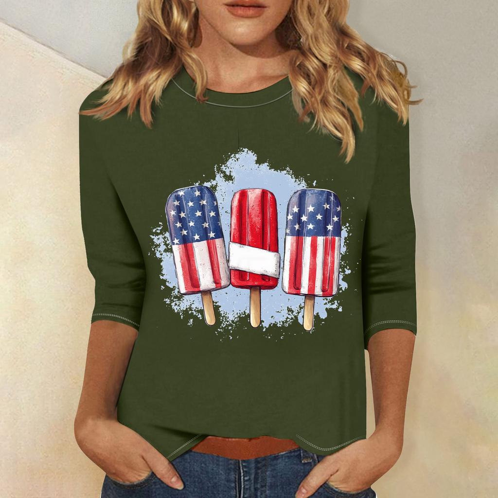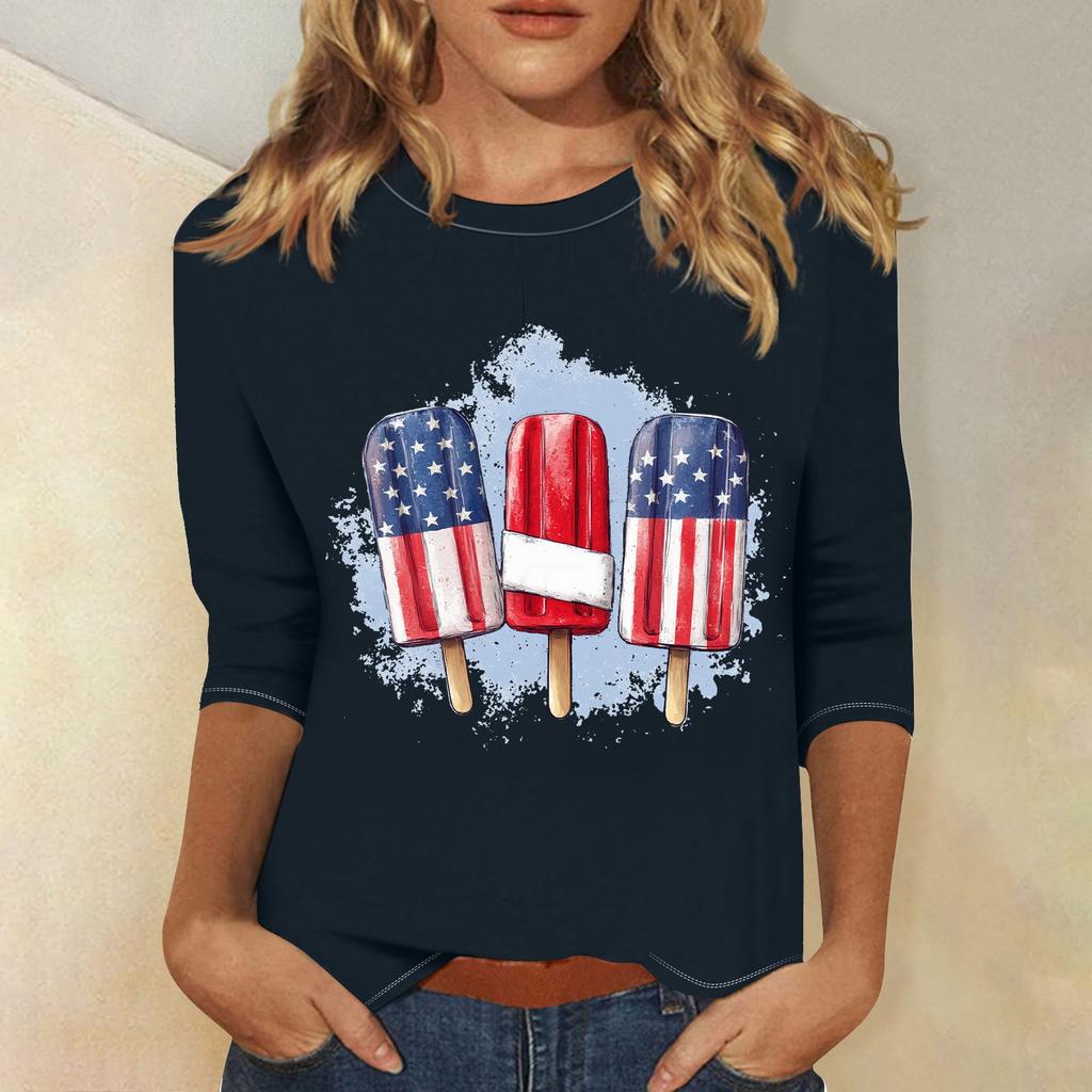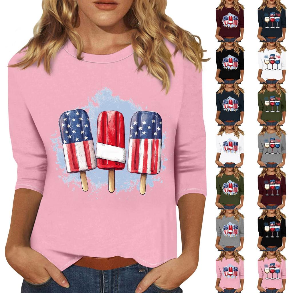 Женская мода свободный повседневный топ с семью рукавами и круглым вырезом