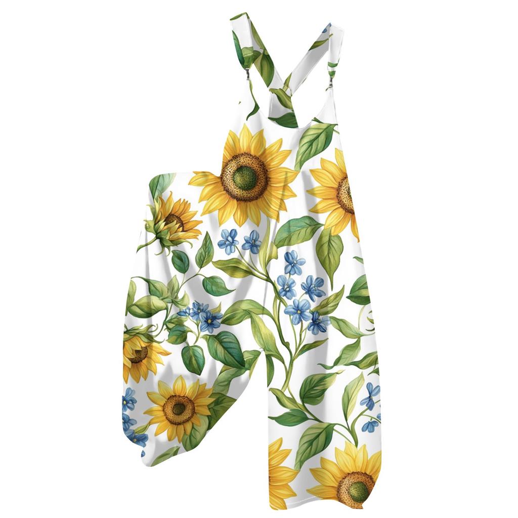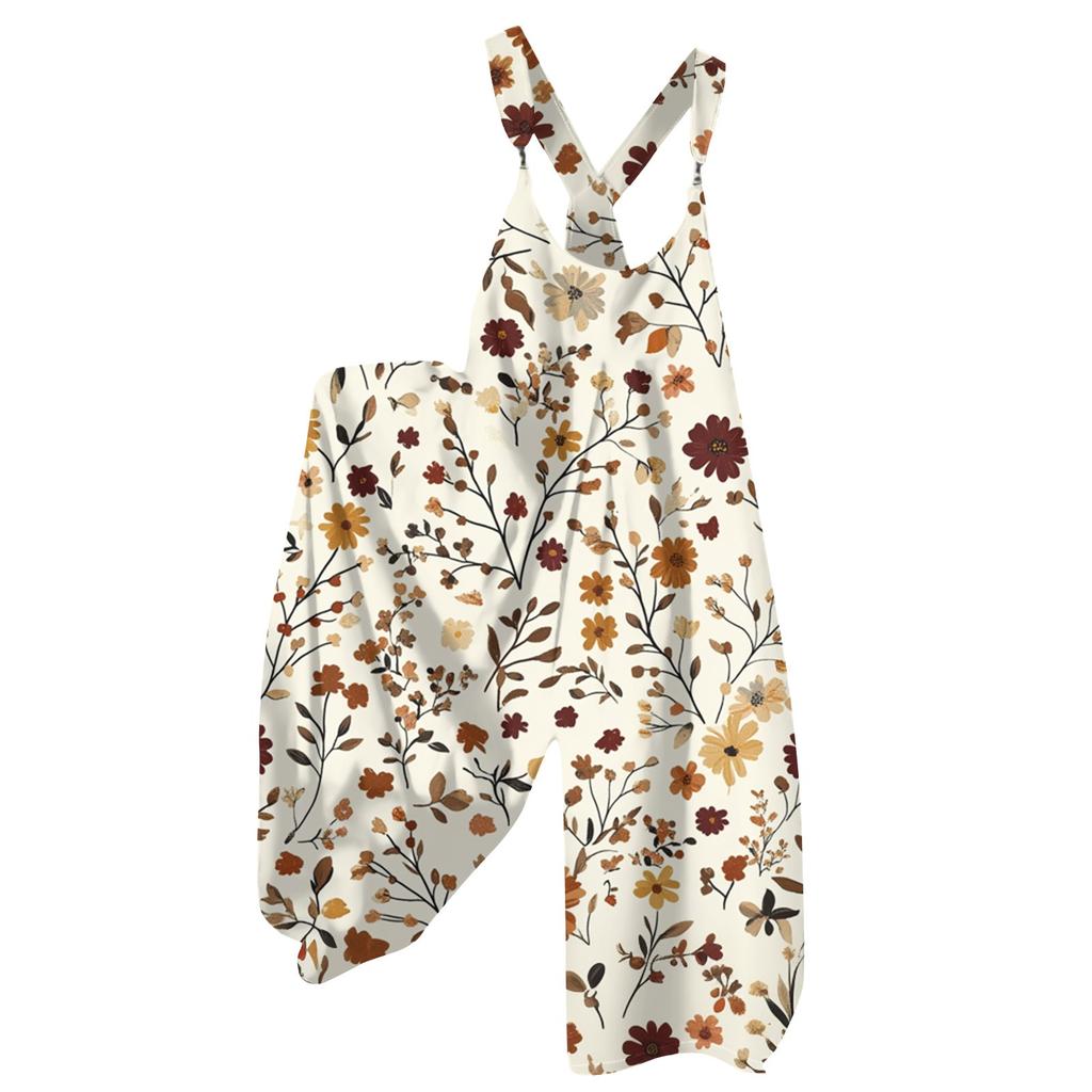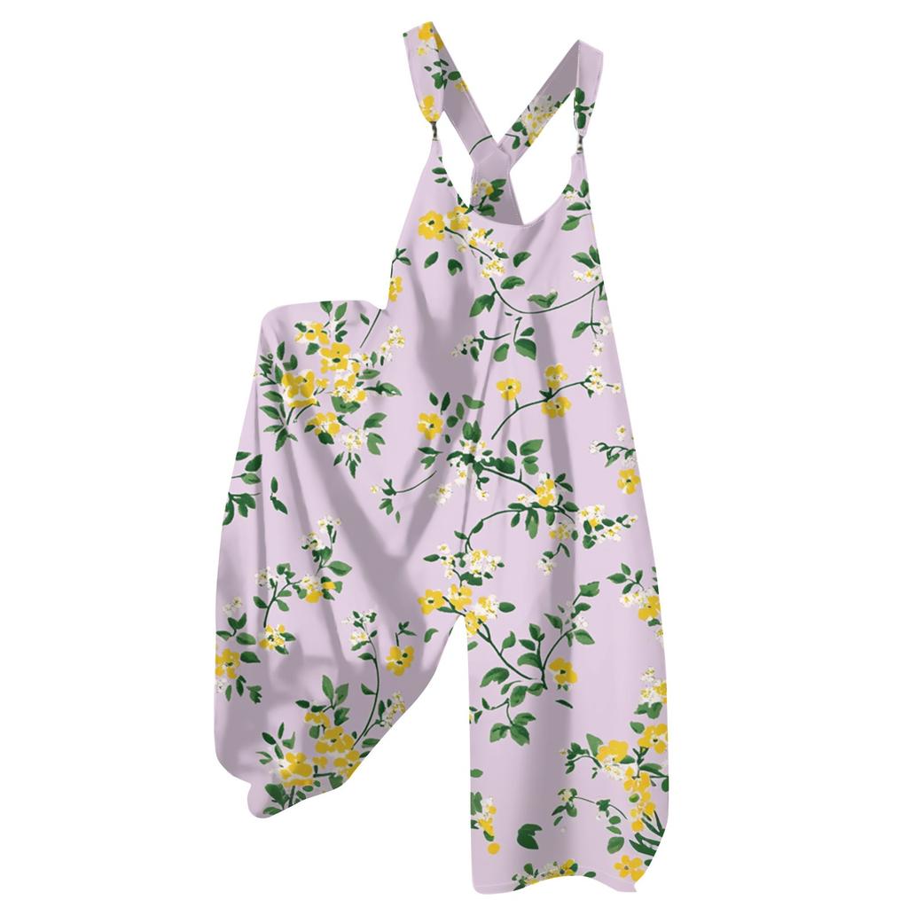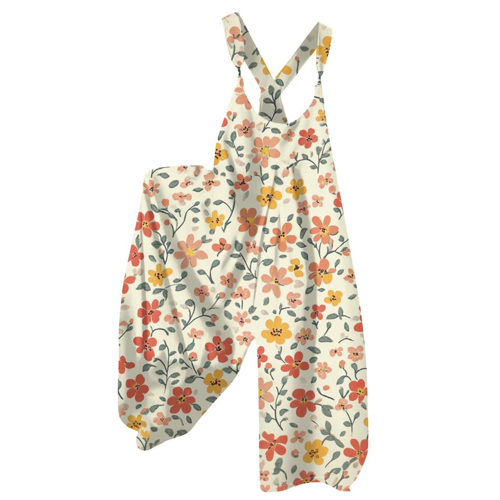 Женский летний комбинезон с цветочным принтом в винтажном стиле (Нерегулируемые ремни)